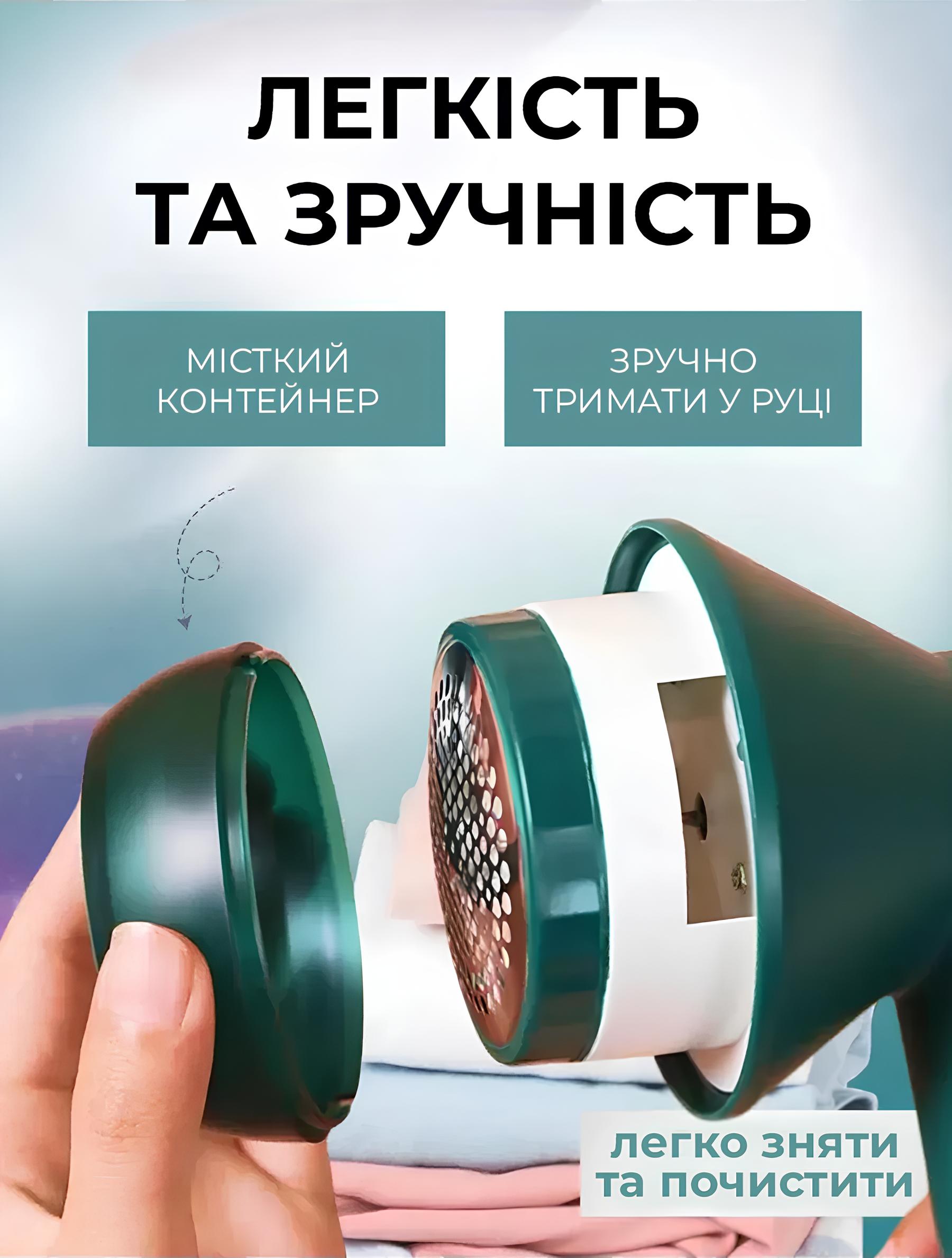 Швидко та без ушкоджень видаляє катишки з одягу.
