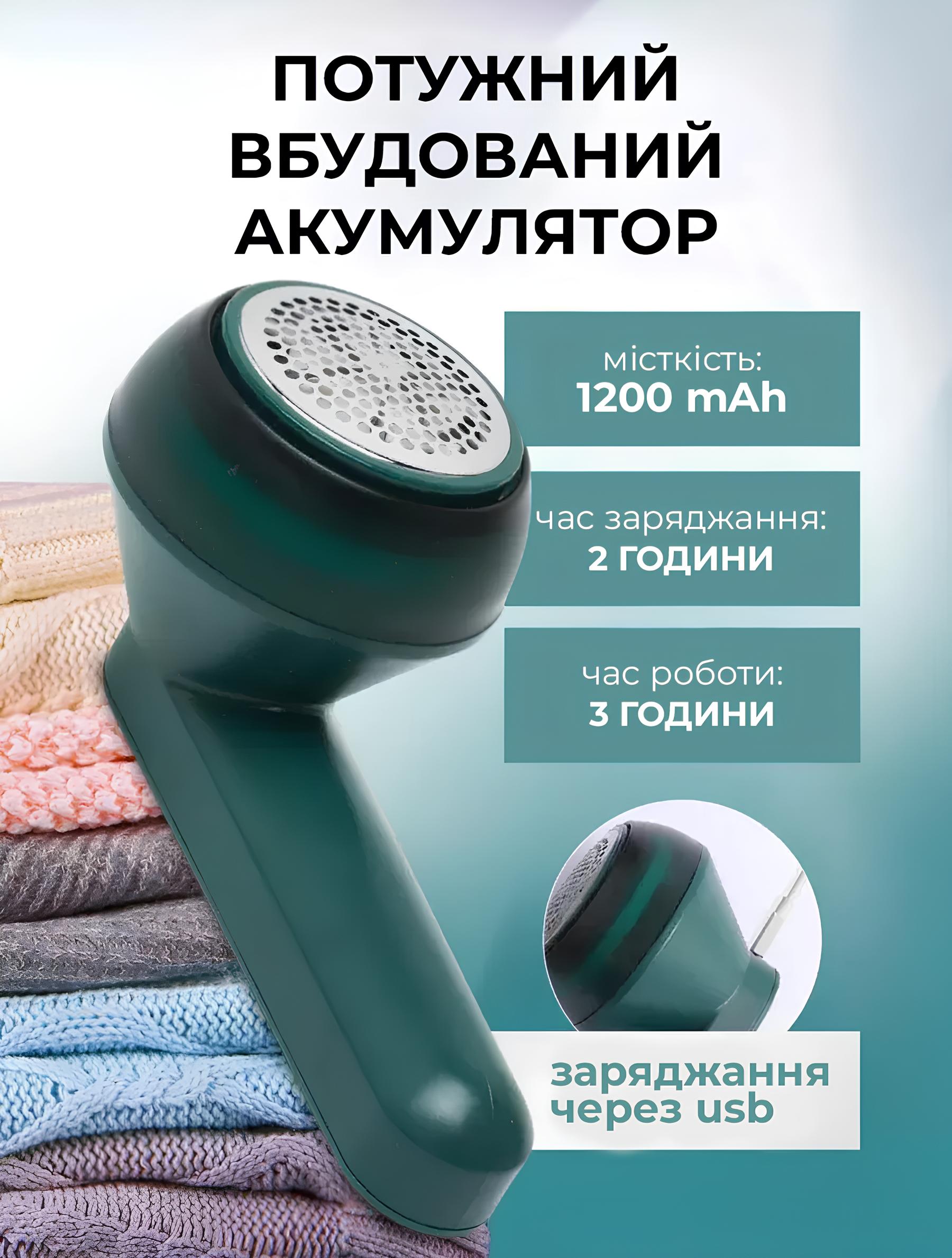 Акумуляторна машинка від катишків швидко та ефективно видаляє катишки з вашого одягу. Компактна та зручна у використанні, працює від акумулятора, а зарядка відбувається через USB.